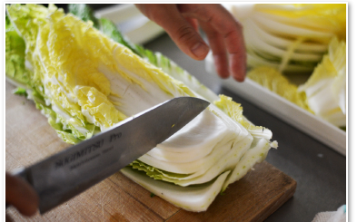 白菜を切っていく。