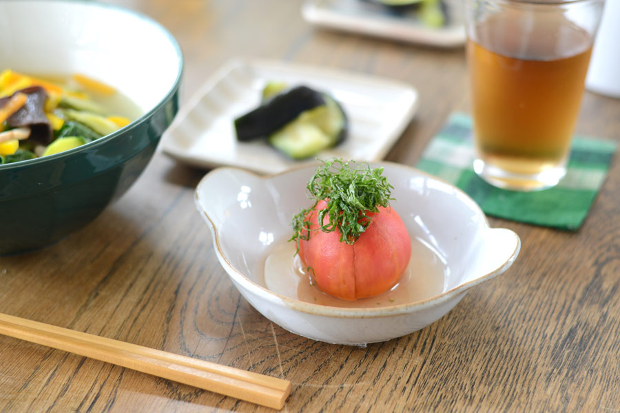 だしを含ませた冷やしトマトは、やさしい味わいで夏の疲れを癒してくれる。
