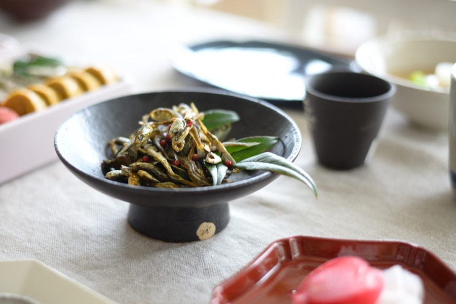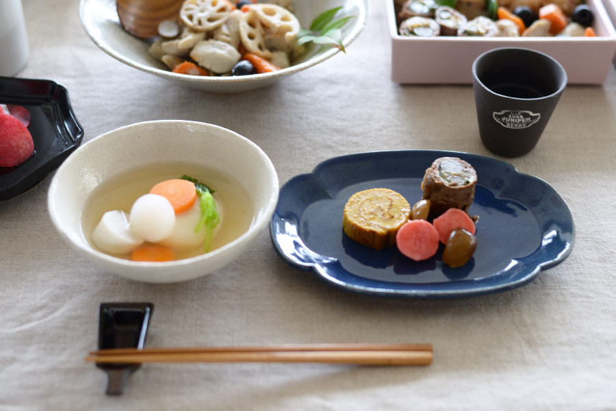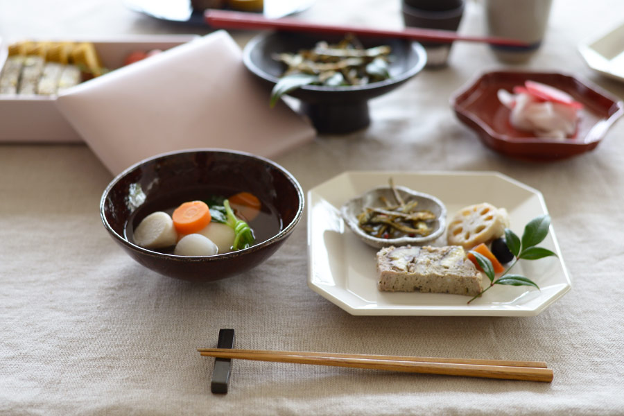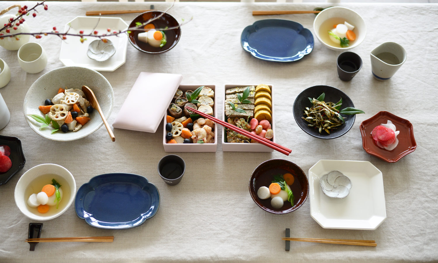 お正月らしさを感じられる、凛とした雰囲気のある器を使ったコーディネート。
