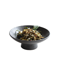 器の余白を生かして少量ずつもりつけると美しく仕上がる。