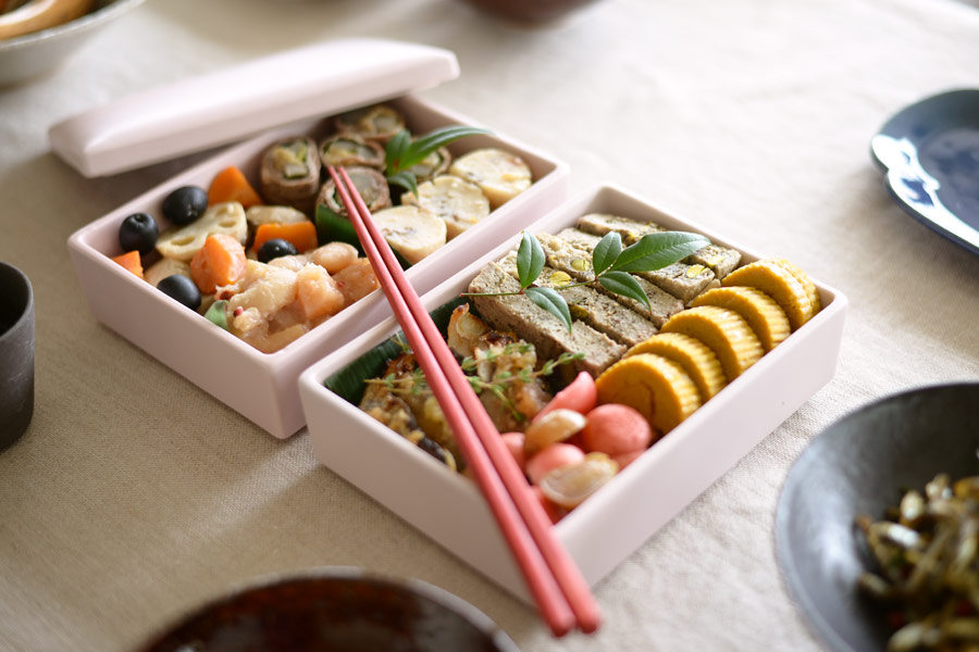 浅めのお重は品数が少なくても様になるので初心者の方も使いやすい。