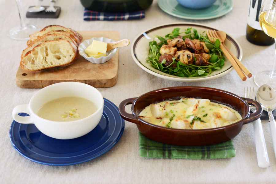 今日は旬の素材をグラタンや濃厚なポタージュにして味わおう。