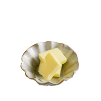 パンみたいな焦げ目のある表情がかわいい小さな器に、バターとサジをのせて。