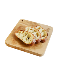 スライスしたパンとバターを並べたのは、チーク材のカッティングボード。
