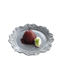 ワイン色に染まった洋梨に生クリームを添えていただく。