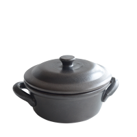 深いこげ茶色の土鍋は、ワインなど食材の色を気にせず使える。