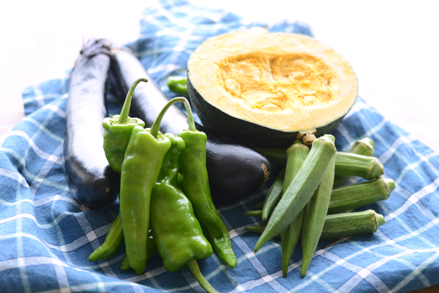 旬のかぼちゃやなす、ししとうなどの色鮮やかな夏野菜は定番の揚げ浸しに。