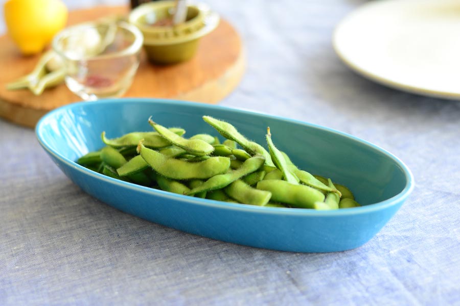 きれいな水色とすっきりとした形が、いつもの枝豆をちょっと新鮮に見せてくれる。