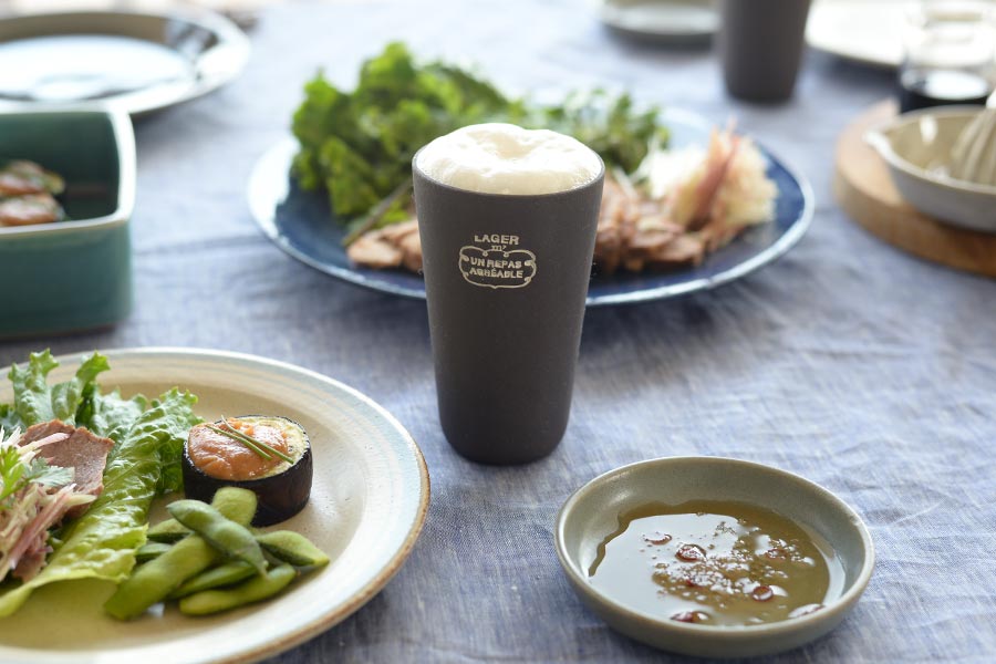 保冷効果もあって、きめの細かい泡が楽しめる陶製のビアカップ。