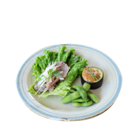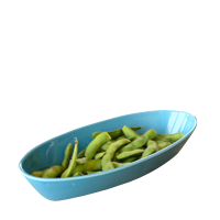 カラフルな船形の器を枝豆用に。