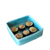 特別感を出したい時には、お重の身だけを角鉢として使うのもおすすめ。