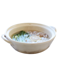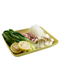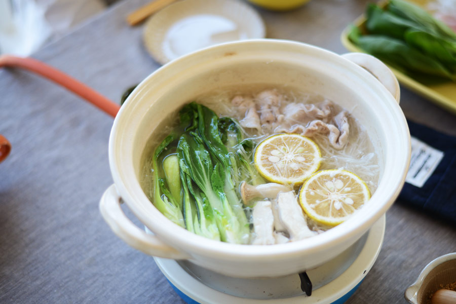 香り高いゆずと豚肉やホタテのうまみ、全体をまとめてくれる塩麹が味わい深い鍋。