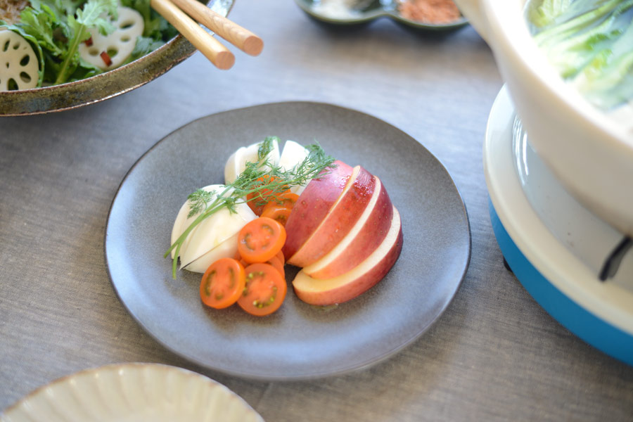 食材のきれいな色を引き立てているのは、ダークグレーのプレート。