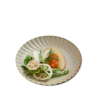 サラダの取皿にはレリーフのかわいらしいものを組み合わせて。