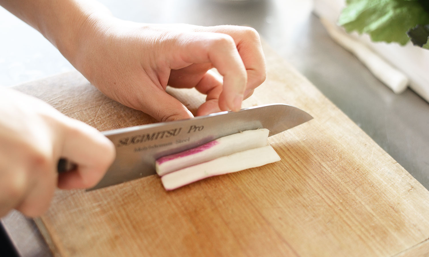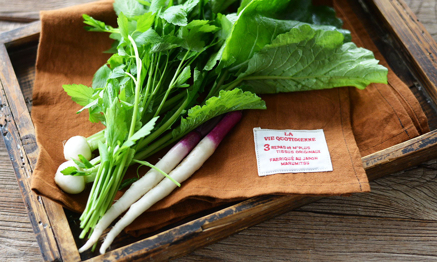 今日はすずな(かぶ)、すずしろ(大根)とせりを使います。