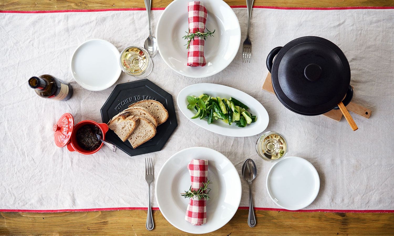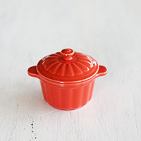赤い蓋付きのココットに入れてテーブルに並べれば、取り分けて食べるのも楽しくなります。