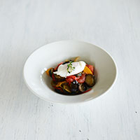 ちょっとごちそう感のある、ポーチドエッグをのせたラタトゥイユ。