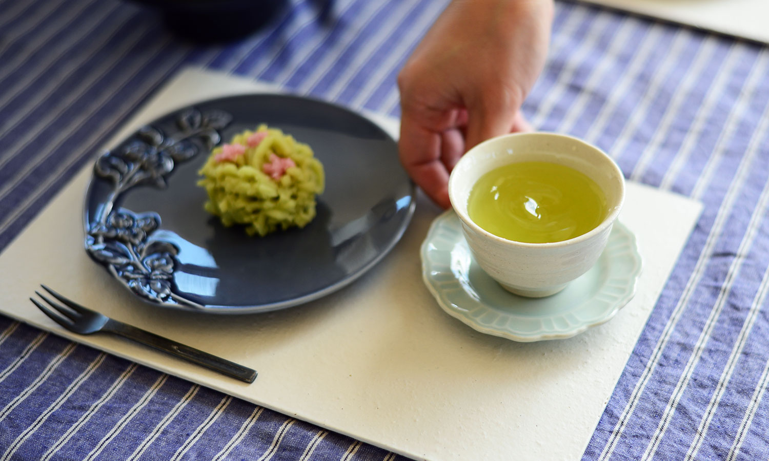 夏の始まりらしい爽やかな器使いで新茶を楽しみましょう。
