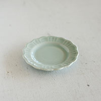 湯呑と菓子皿に、素材感のある薄くフラットな陶器のプレートを合わせました。