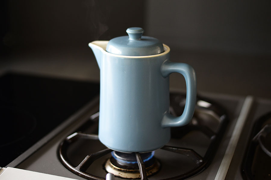 お茶を淹れる時は、必ず沸騰させてカルキのにおいを飛ばしてから。
