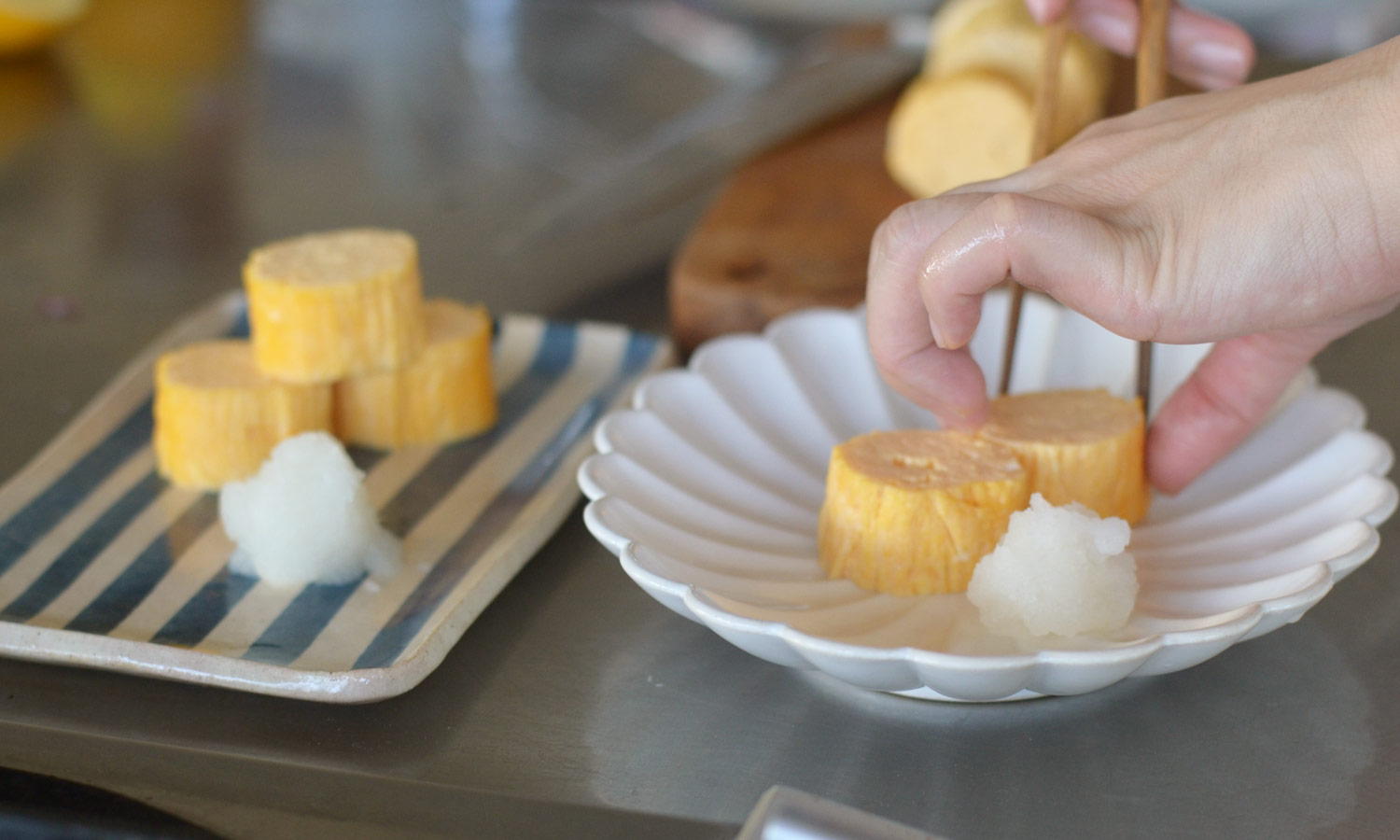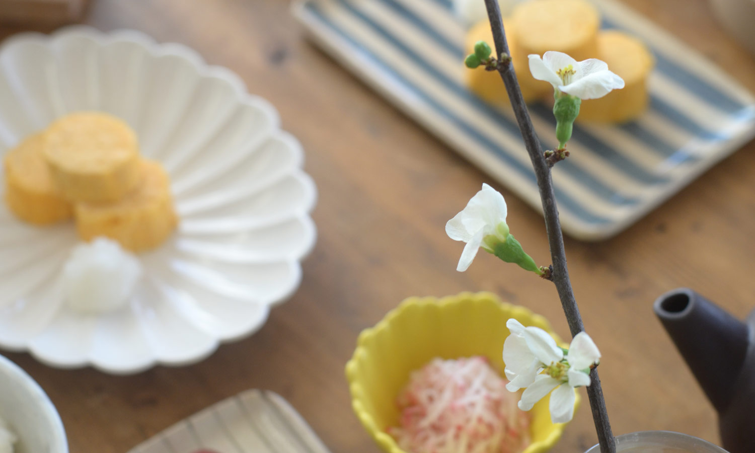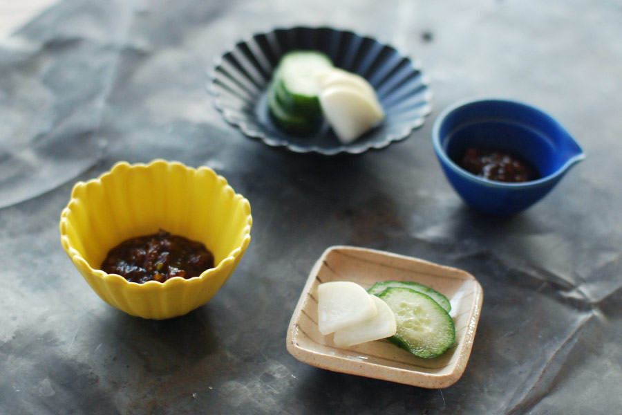 きれいな色や、形のかわいい小皿や小鉢にのせるだけで料理が引き立ちます。