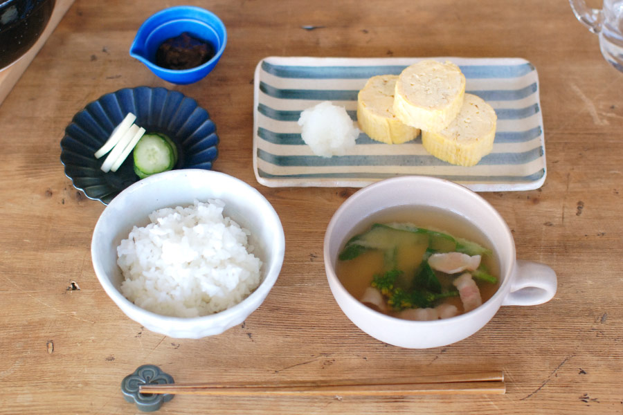 炊きたてのごはんとお味噌汁、あとは常備菜があれば簡単に一汁三菜に。