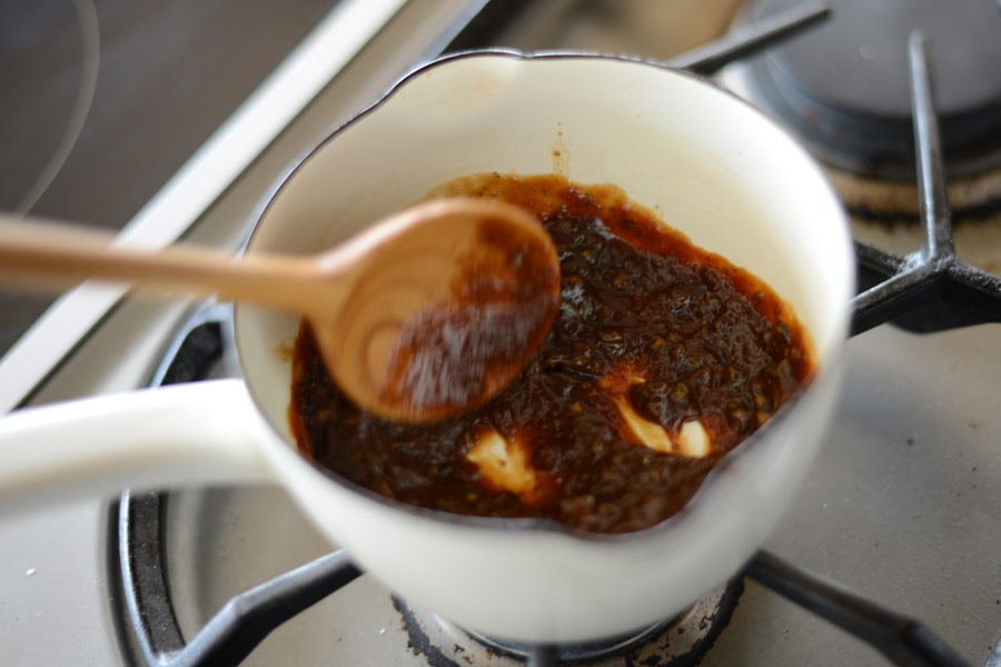 薄い皮ごと刻んで油で炒めたら、味噌と砂糖、みりん、酒を加えて火にかけながら練り合わせるだけ。