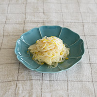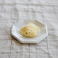 蓮根を秋らしく菊の花と和えて甘酢風のサラダに。