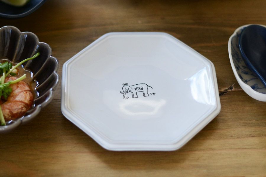 取皿には判子で押された黒いゾウがポイントのプレートを。