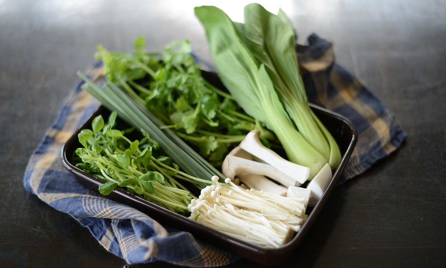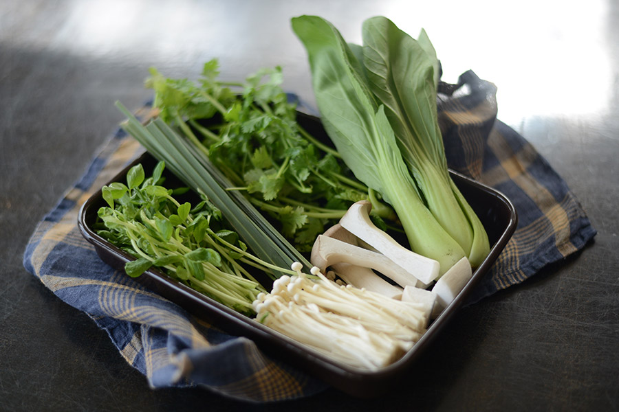 旬のきのこやさつまいもなど、野菜をたっぷり入れて味わいます。
