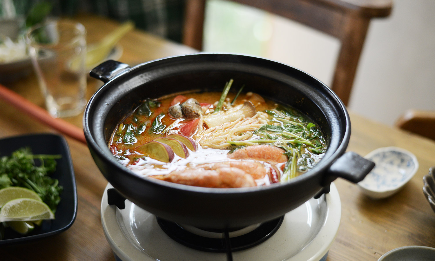 今日はトムヤム鍋。独特の酸味のあるトムヤムクンのお鍋です。