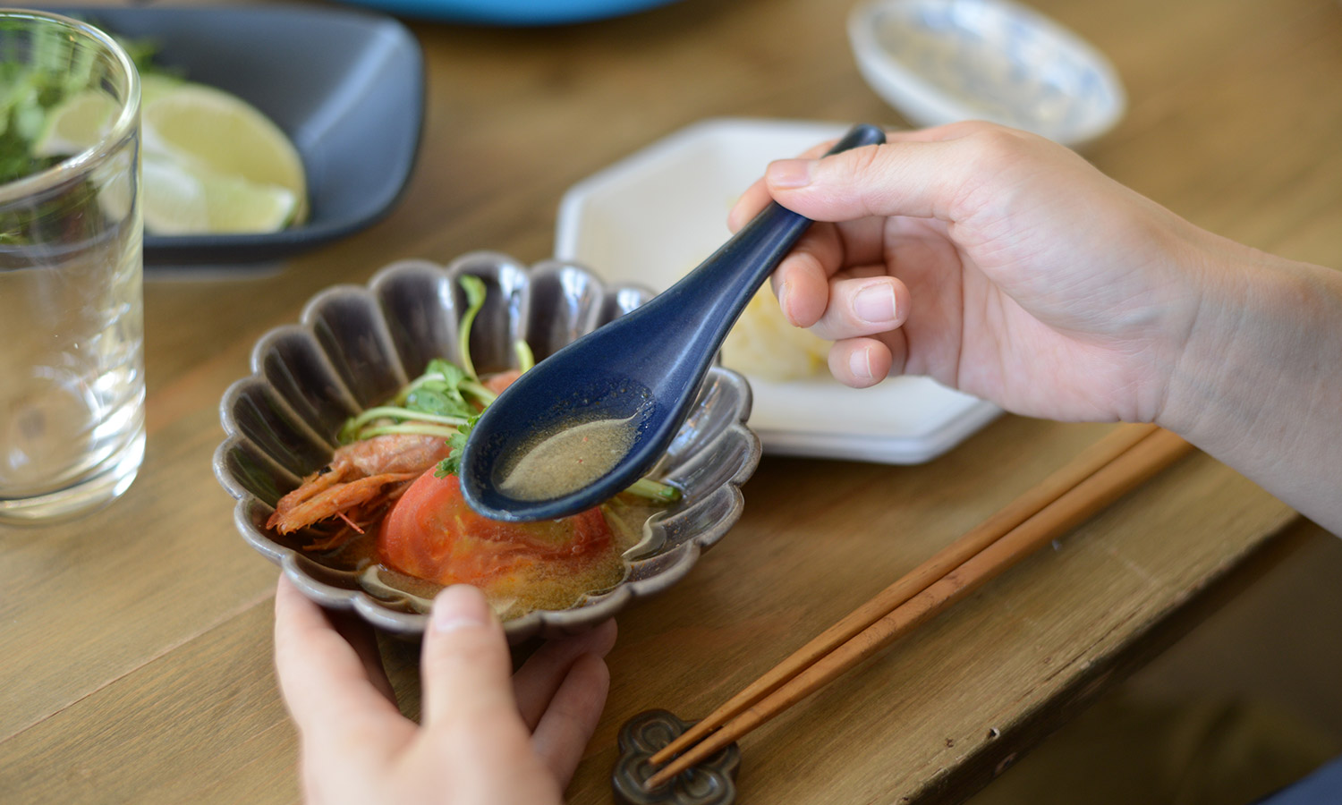 鮮やかなターコイズブルーがエスニック料理の食卓にも似合います。