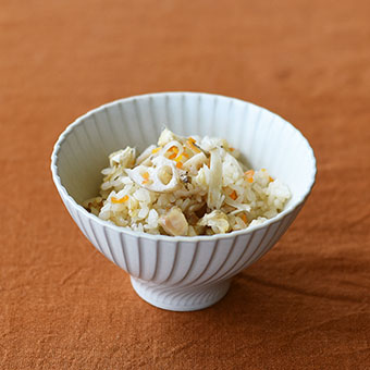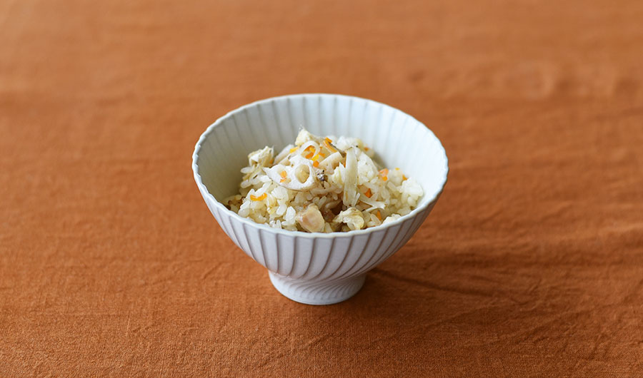 根菜をたっぷり入れた炊き込みご飯を盛ったのは