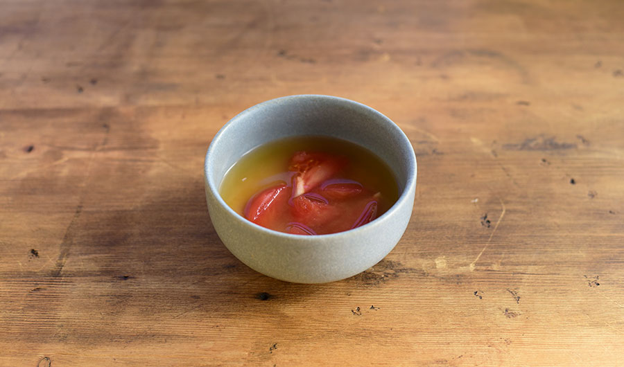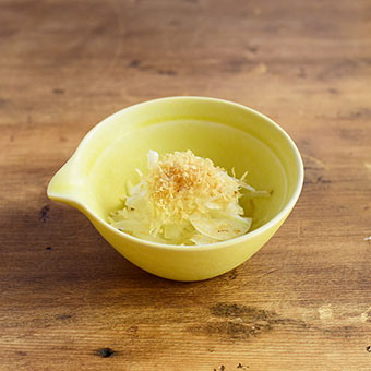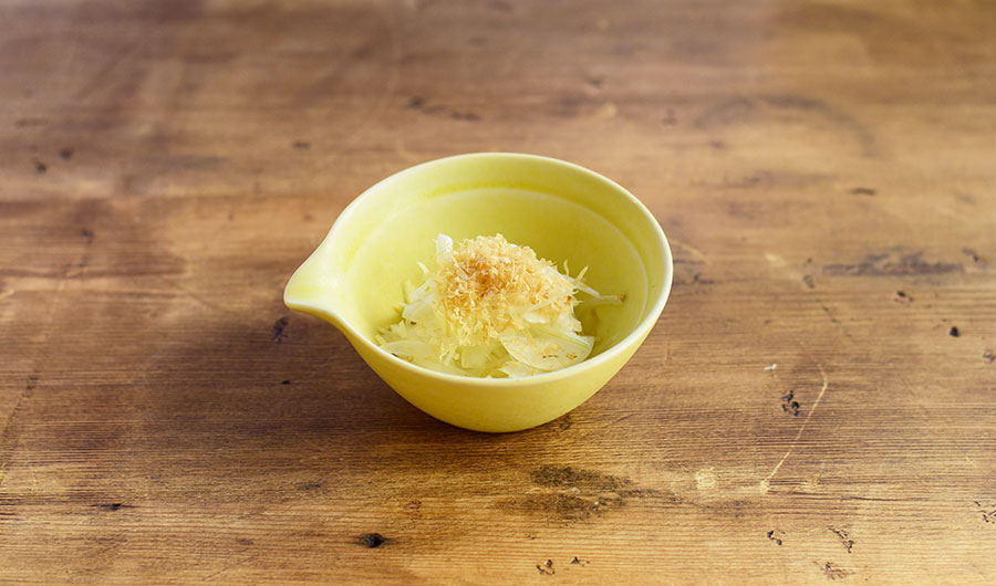 新玉ねぎのスライスに削りぶしをかけただけのシンプルなサラダ。