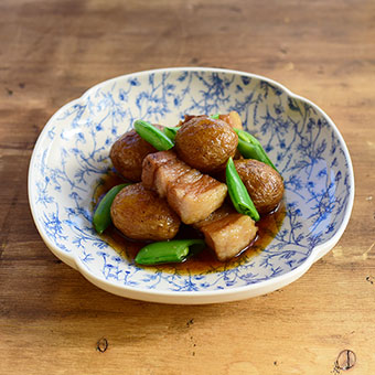 皮つきの新じゃがを豚バラと煮た、いつもとちょっと違う肉じゃが。