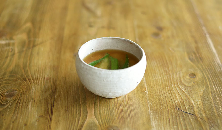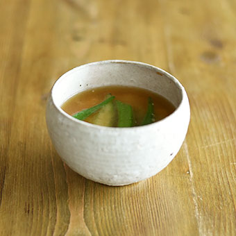 豆腐とオクラのみそ汁は、ころんとした丸みのある器に。
