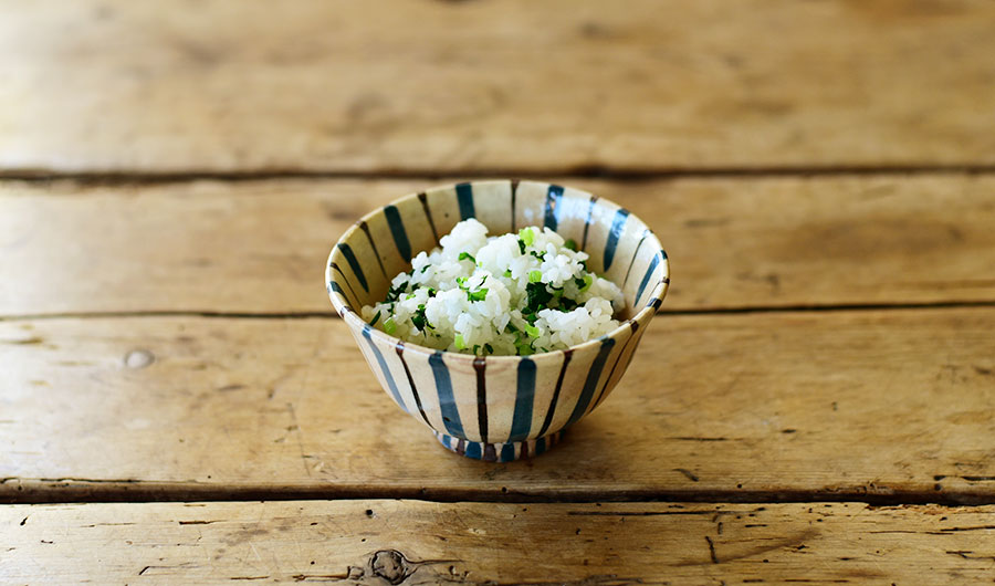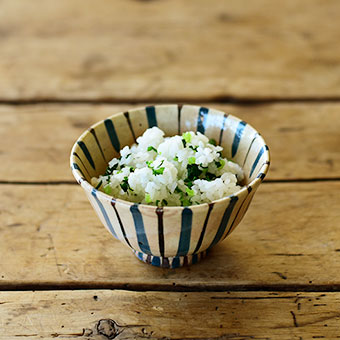 生地色が透けて見えるグレーの色合いや直線的なシルエットが印象的な器。