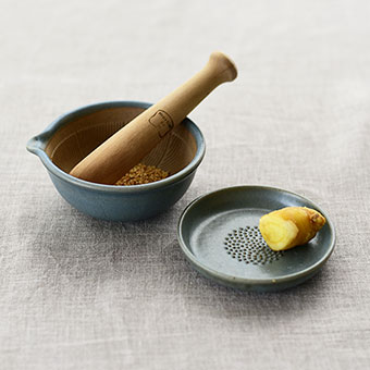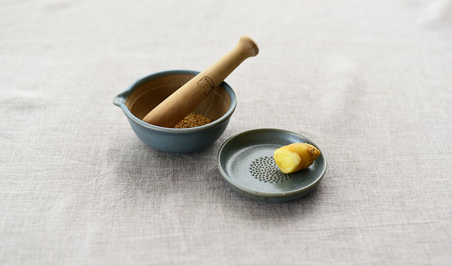 ミニサイズのすり鉢とおろし皿は食卓の上でも使いたくなるようにデザインされています。