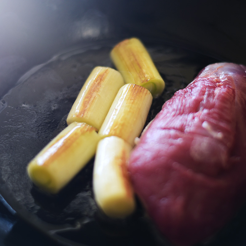 たっぷりのオリーブオイルで柔らかく煮た、長ねぎのコンフィ。