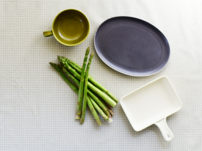 透明感のあるイエローと、アスパラと生クリームを使った優しいグリーンがよく合います。