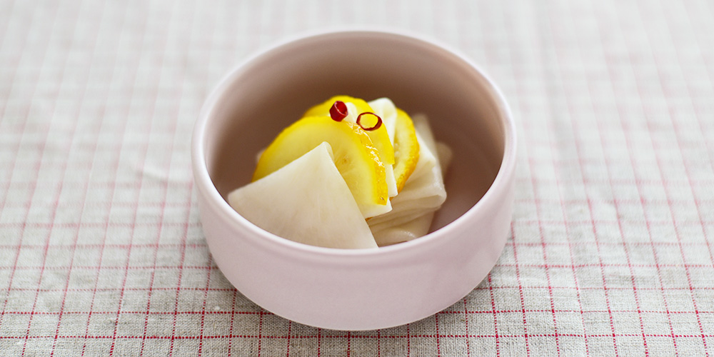 手作りの千枚漬けは、ゆずをたっぷり入れて香りよく仕上げました。 重なりの良いシンプルな切立の器は、浅めでちょっとした箸休めを盛りつけるのにぴったり。 マットで落ち着いた色合いが、洗練されたモダンな印象にしてくれます。