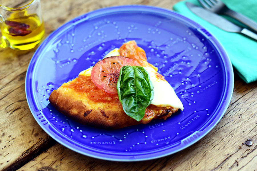 定番の組み合わせに、厚くスライスしたトマトをのせて。