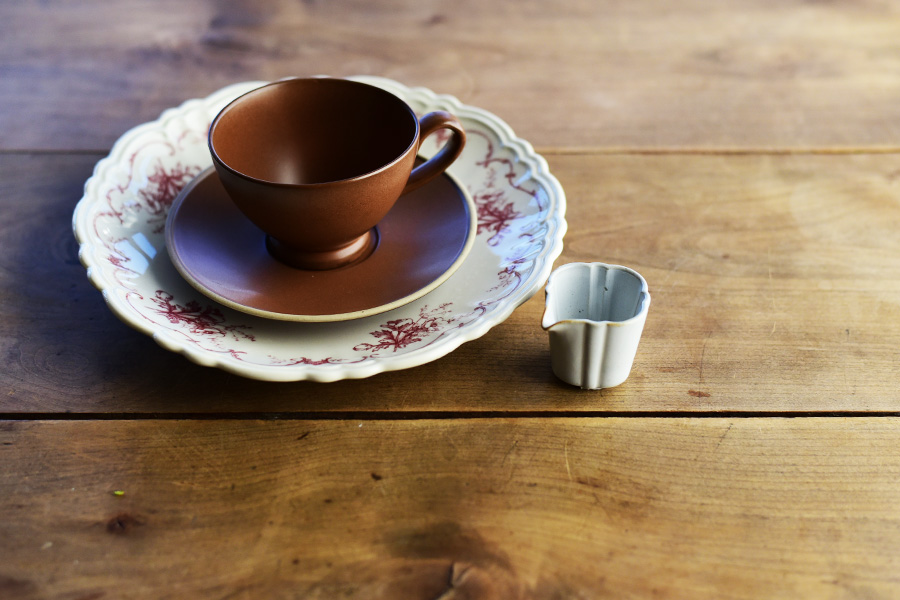 ソーサーの縁も手作業で色を抜き、素地が見えていたりと細部にまでこだわって作られています。