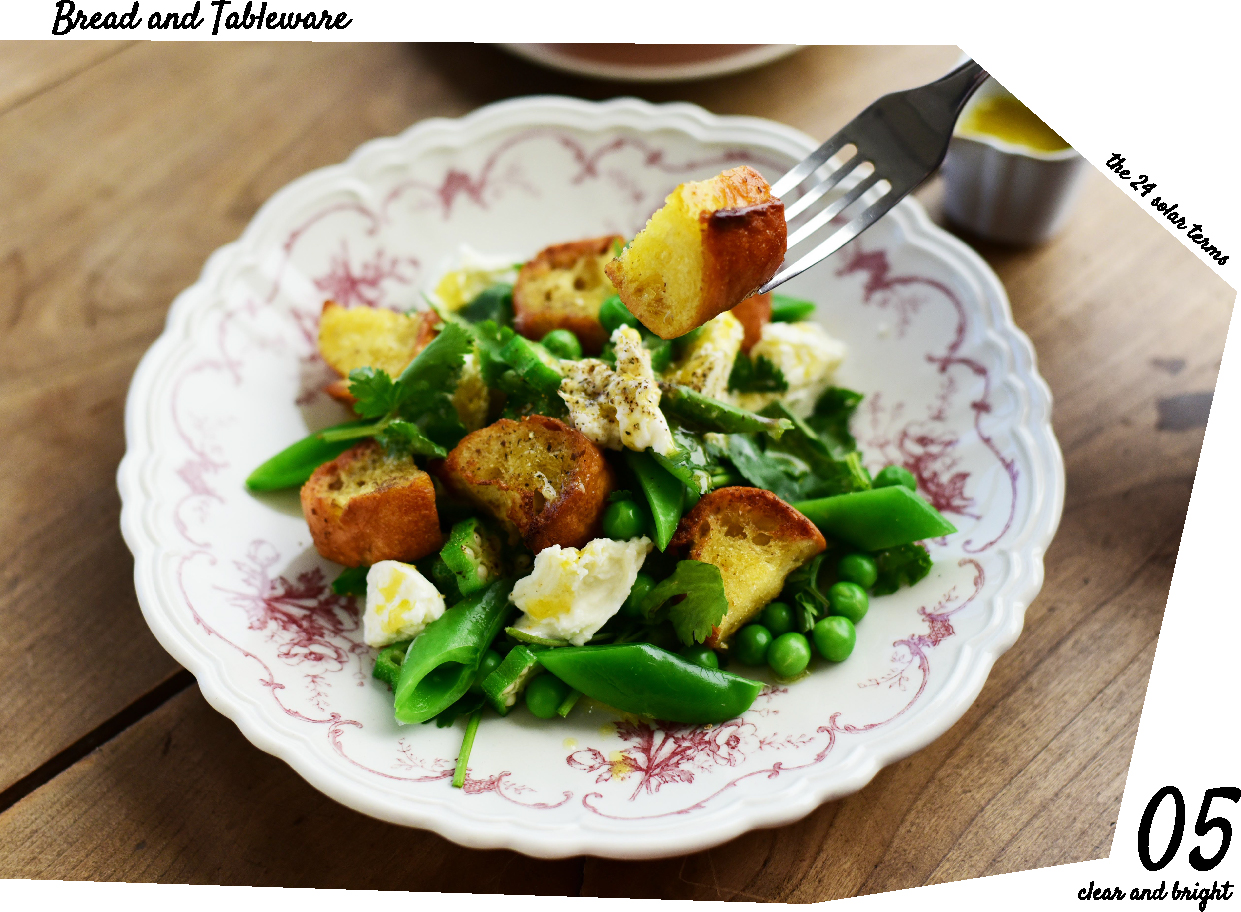 スナップエンドウなどの春野菜と一緒にサラダ仕立にして味わいます。