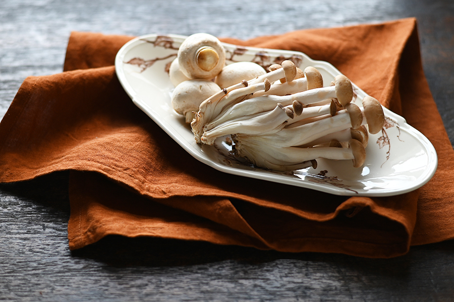 きのこは違う種類を混ぜることでうまみが増すらしい。 今日はマッシュルームとしめじを使う。