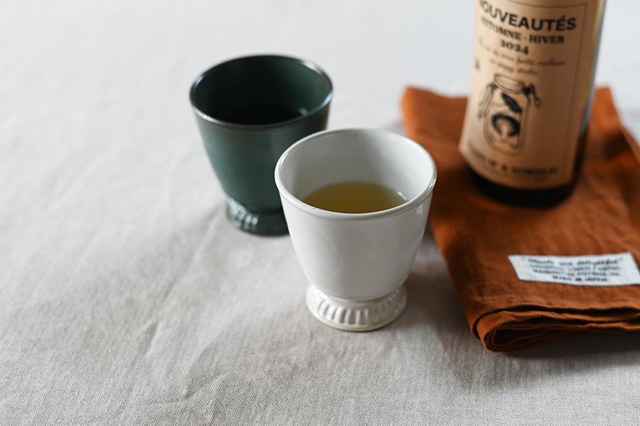 シックな雰囲気によく合う脚付きゴブレット。 ワイングラスをガラスから陶製に変えるといつもと違う雰囲気が楽しめる。
