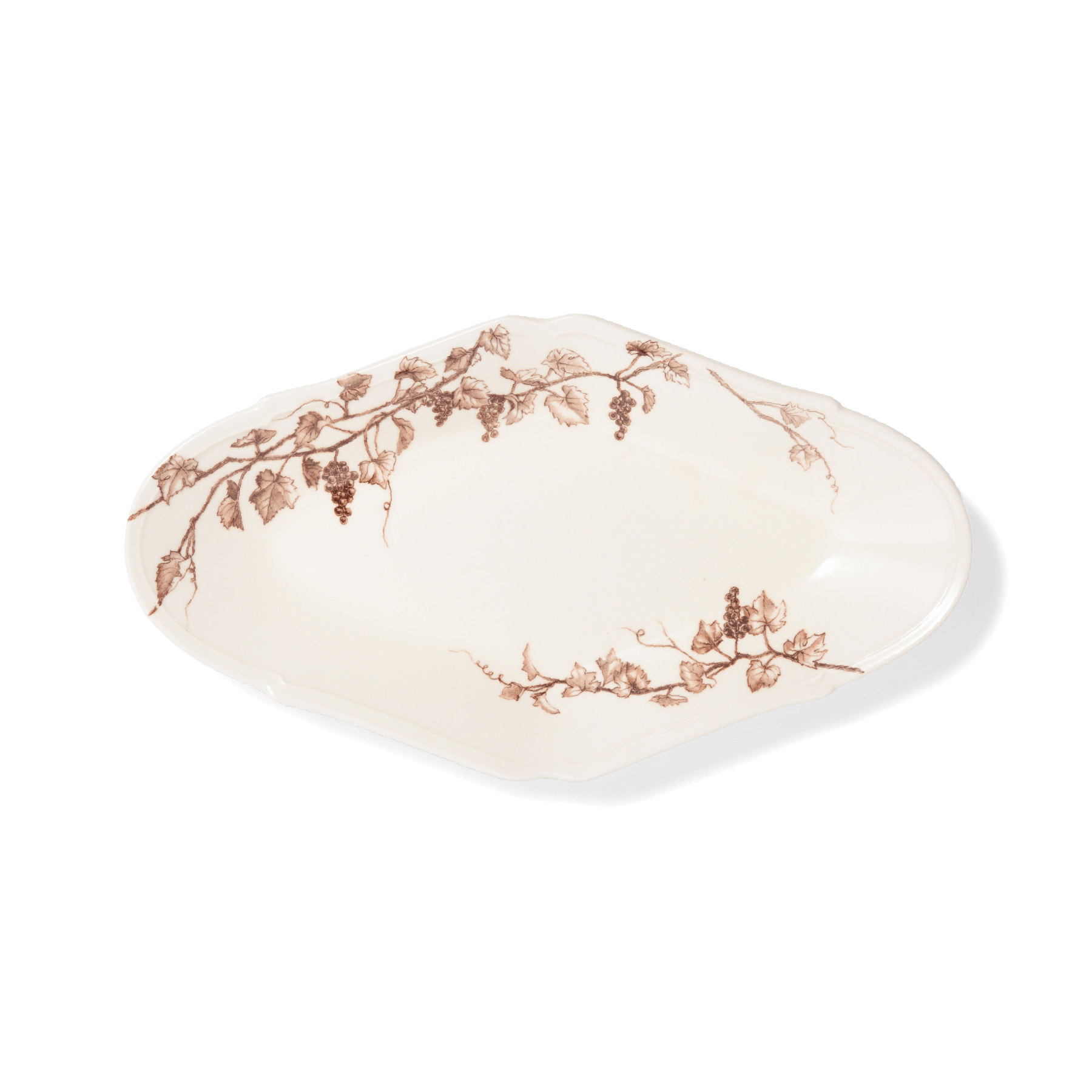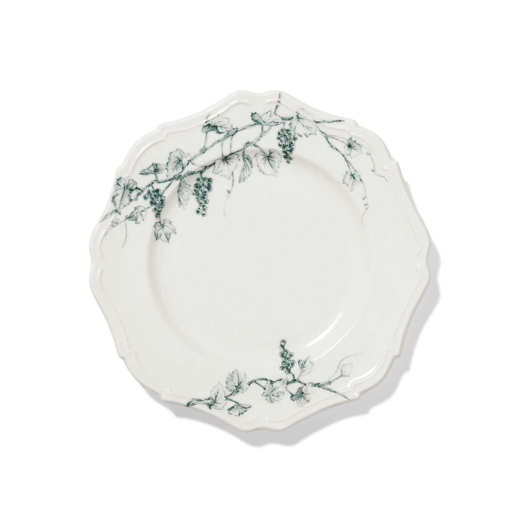 ルッコラとかぶのサラダを、ぶどうの絵柄が施されたアンティークの様なプレートに。 エレガントなフォルムが食卓をちょっと優雅な雰囲気にしてくれる。