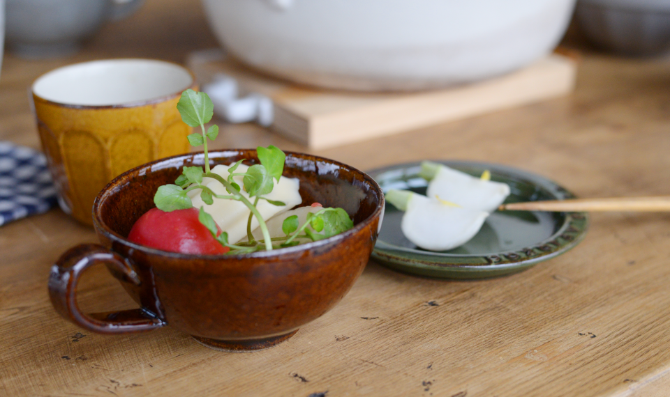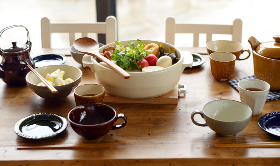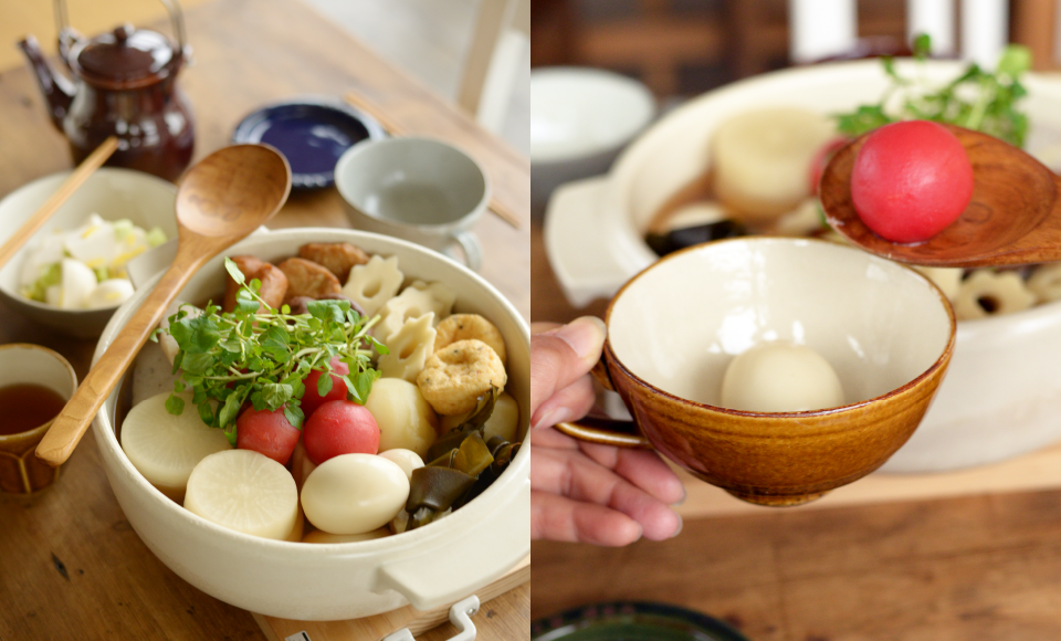 いつものおでんにトマトを加えて彩りも豊かにヘルシーに。彩りだけでなく、だしにトマトの甘みと旨味が加わってひと味違った味わい。湯むきしたトマトは煮込まず、温める程度にするのがおいしく食べるポイント。深さのある大きい鍋でたっぷりと作りたいですね。