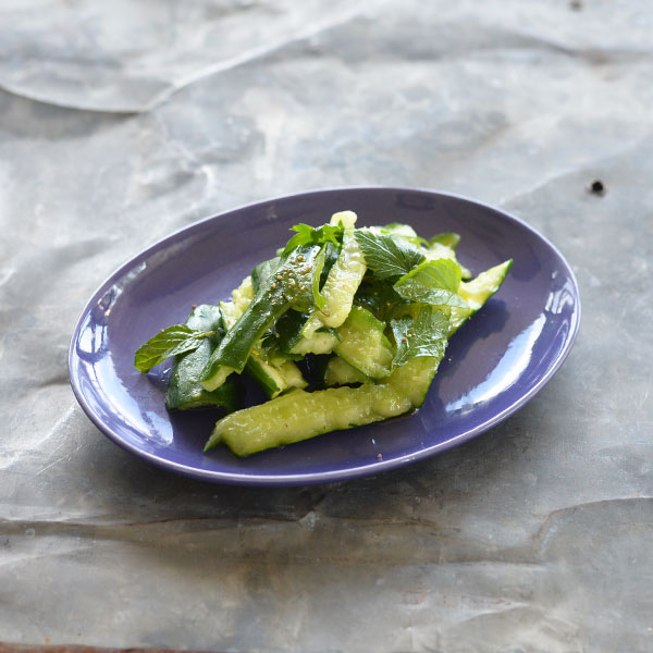 きゅうりの味と香りが満喫できるサラダ。 日本は生できゅうりを食べる国、世界一なのだそうです。