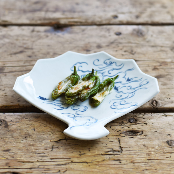 脚付きの焼物皿はゆらぎのあるシルエットが素朴で、素材を丸ごと使った飾り気のない料理に良く合います。 ベトナムタイルをイメージした丸皿は、全体に入った柄が賑やかな雰囲気。 いわしをモチーフにしたプレートは活気があり、盛るだけで楽しい印象に。 扇型の器は背景の柄が料理を引き立て爽やかな上質感があります。